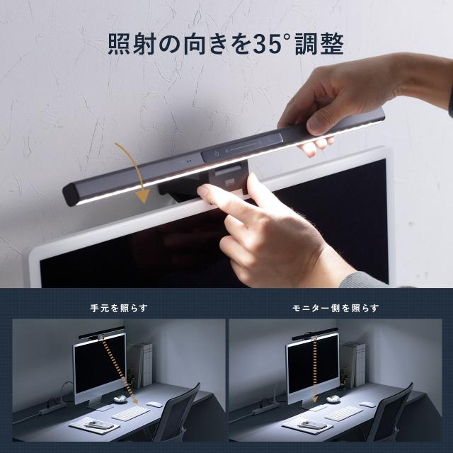 デスクライト USBライト モニターライト バーライト センサー搭載 最大190ルーメン 色温度調整 明るさ無段階 幅45cm[800-LED090]