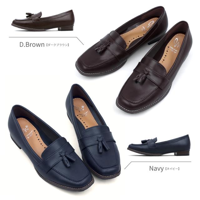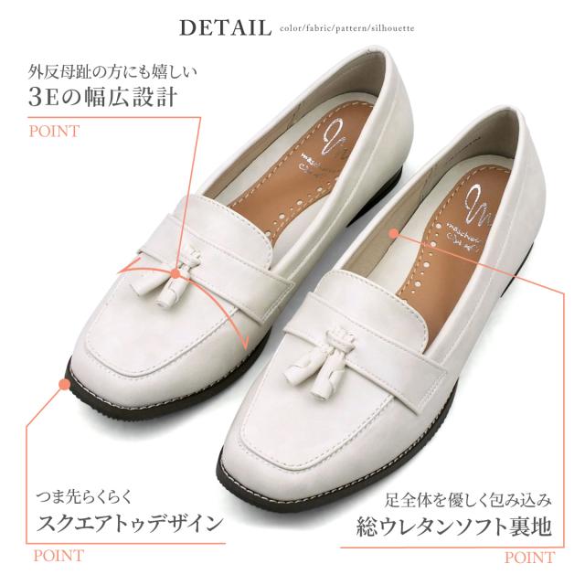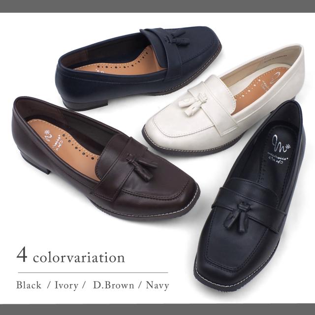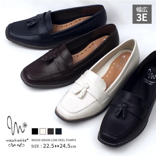 タッセルローファー パンプス レディース 3E 幅広 トラッド スクエアトゥ フラットヒール フラットシューズ 女性用 ローヒール 軽量 屈曲 ムラ加工PU クッションインソール くなりにくい 歩きやすい 快適 プレゼント ギフト maschietta マスチェッタ 2773