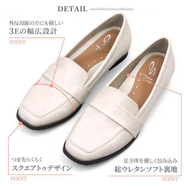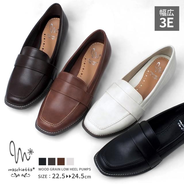 ローファー パンプス ペニーローファー コインローファー レディース 3E 幅広 トラッド スクエアトゥ フラットヒール フラットシューズ 女性用 ローヒール 軽量 屈曲 ムラ加工PU クッションインソール くなりにくい 歩きやすい 快適 maschietta マスチェッタ 2774
