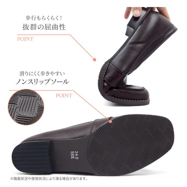 maschietta[マスチェッタ]ムラ仕上げ調PU素材を私用し、高級感のある見た目を実現しました。スクエアトゥでつま先部分に余裕があり、長時間履いても疲れにくいデザインです。屈曲性のあるTPRソールを採用し、歩行時の自然な動きをサポートします。内部には総ウレタンソフト生地を使用し、足全体を優しく包み込みます。ハーフピース出しトラッドテイストのデザインが、幅広3Eの快適なフィット感とともに、クラシックな魅力を引き立てます。2.5cmのローヒールで日常使いにも最適です。