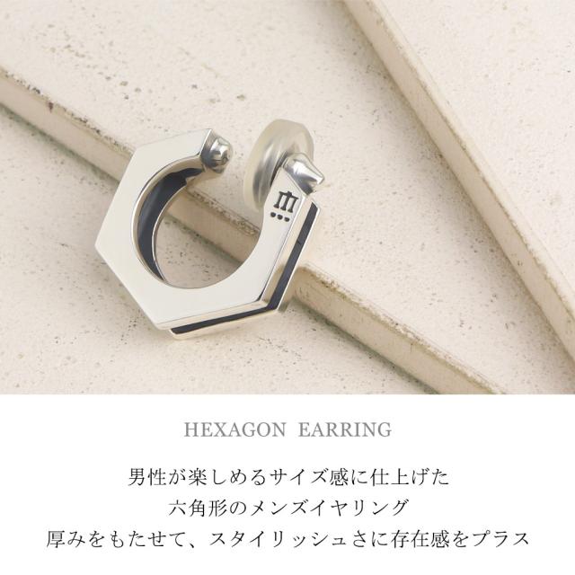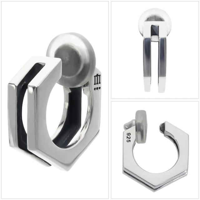 Dr MONROE ドクターモンロー ヘキサゴン フープ イヤリング シルバー 六角形 スリット シンプル 鏡面 シルバー925 ノンホールピアス フェイクピアス
