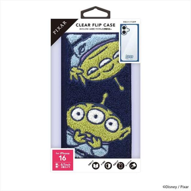 iPhone16対応 ケース カバー Disney PIXAR iPhone16 iPhone 16 アイフォン アイフォン16 アイフォンシックスティーン 6.1インチ 2眼 デュアルカメラ apple アップル クリアフリップカバー クリアフリップケース フリップカバー フリップケース 手帳型ケース 手帳型 二つ折り 二ツ折 ケース カバー エイリアン えいりあん Alien リトルグリーン Little GREEN ip16611tc