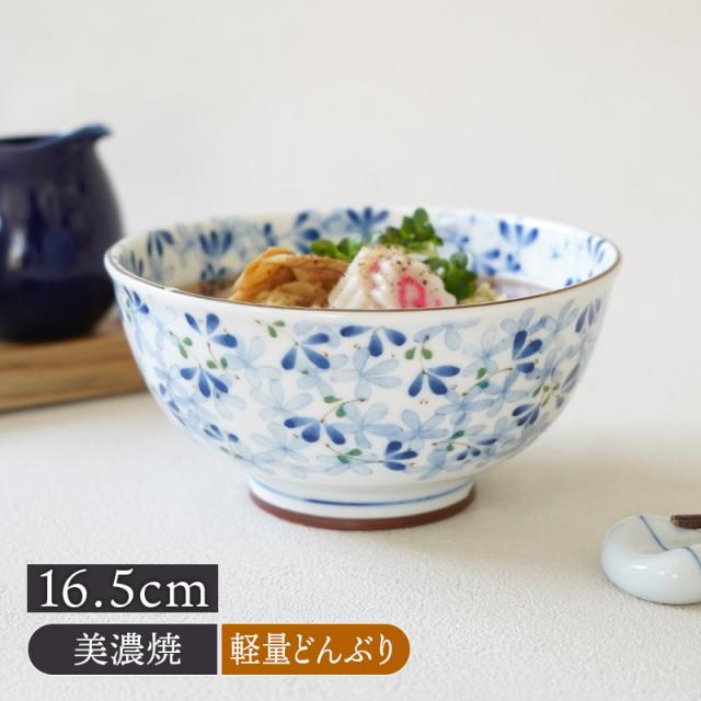 爽やかなブルーの絵付けが美しい軽量どんぶりです。