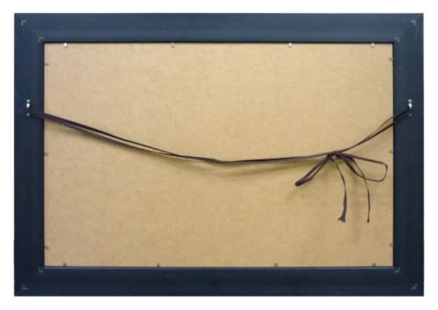 フレームに吊金具が付いておりますので、付属のヒモを結び、壁に取り付けた金具に掛けてご使用ください。