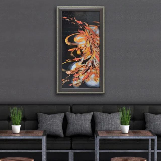 アートパネル リリー グリーンウッド『コイ オン ブラック』 52.5×95cm ( 絵画 絵 アート インテリア 額入り 壁掛け おしゃれ ゲル加工 ポスター アートフレーム アートポスター 額付き 鯉 コイ )