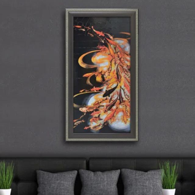 アートパネル リリー グリーンウッド『コイ オン ブラック』 52.5×95cm ( 絵画 絵 アート インテリア 額入り 壁掛け おしゃれ ゲル加工 ポスター アートフレーム アートポスター 額付き 鯉 コイ )
