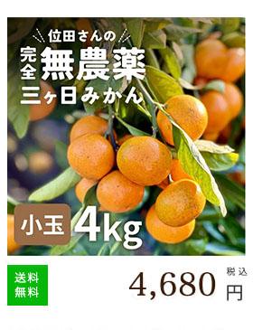 三ヶ日 みかん 位田さんの完全無農薬みかん 4kg 無農薬