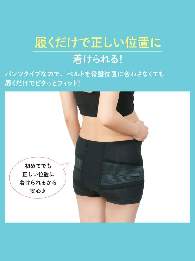 履くだけで正しい位置を固定できるパンツタイプの骨盤ベルトです。立体設計でしっかりフィットするからベルトがズレにくく、程よくフィットしながら快適に骨盤をサポート。本体ベルトを締めた後、外側のベルトでさらに締められるので、その日の体調に合わせて調整できます。