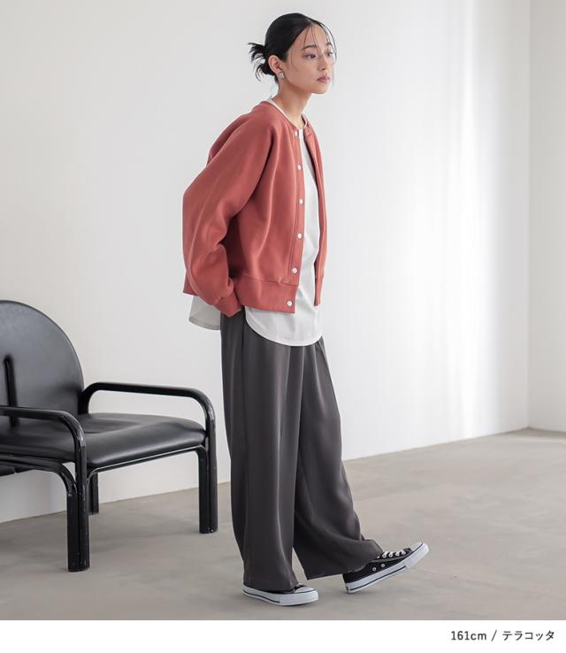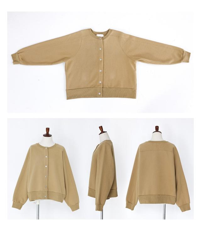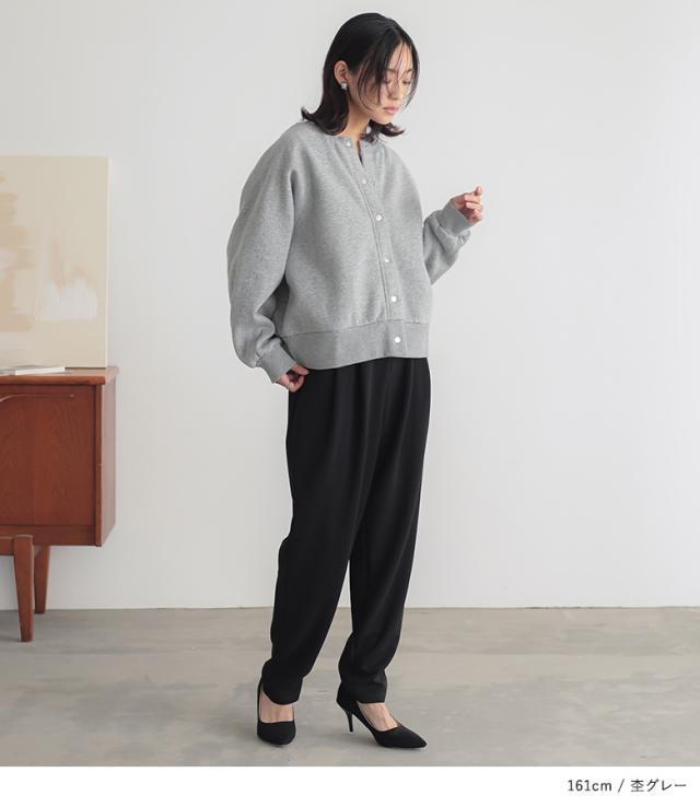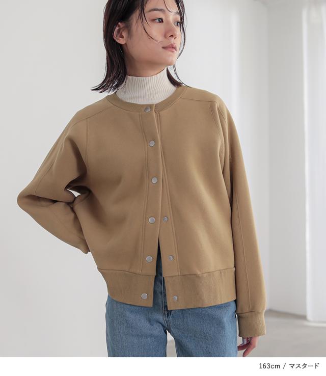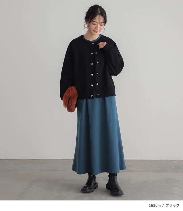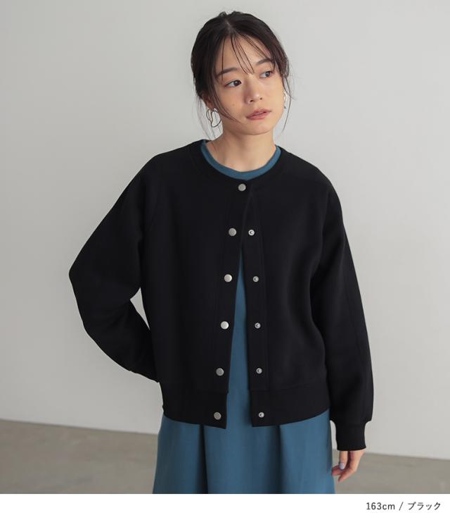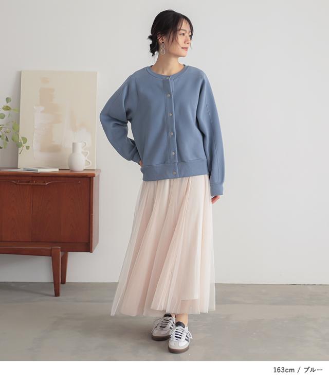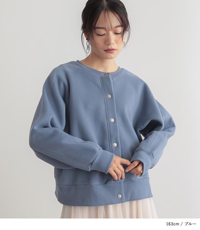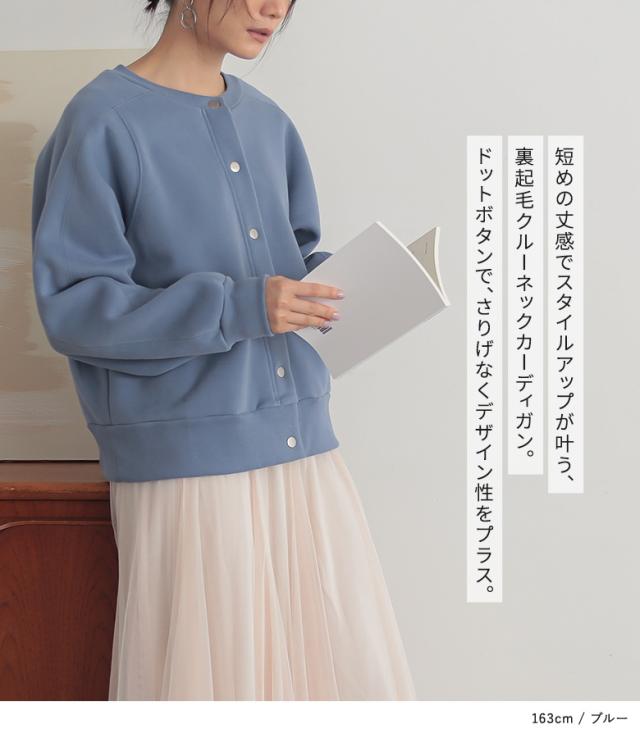 『裏起毛クルーネックカーディガン』【メール便不可】【30】[カーディガン 長袖 レディース トップス ライトアウター 裏起毛 あったか スウェット トレーナー 羽織 ドットボタン レイヤード 重ね着]