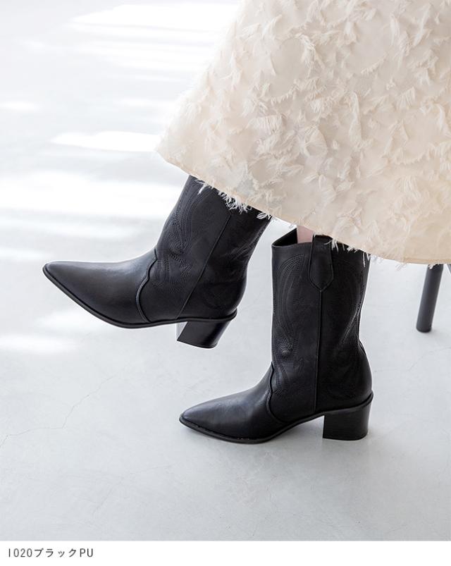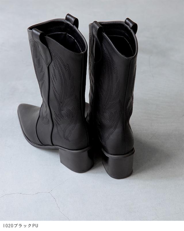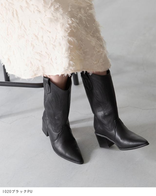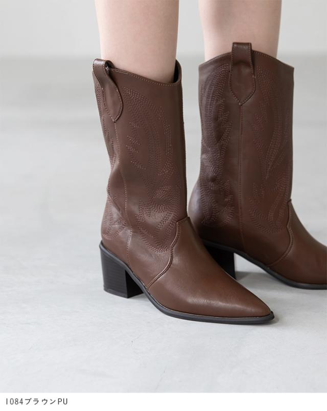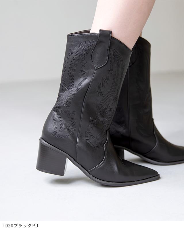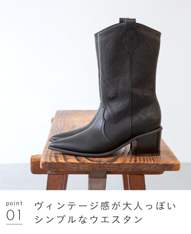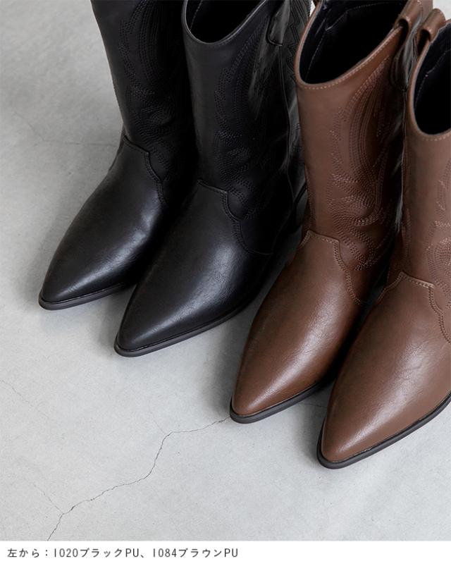 ウエスタンブーツ ウエスタン ショートブーツ ミドルブーツ ショート ミドル レディース ポインテッドトゥ ポインテッド とんがりトゥ ヴィンテージ ヴィンテージ風 刺繍 チャンキーヒール 太ヒール チャンキー 太めヒール デザインヒール 変形ヒール ヒール 高め 美脚 スタック調ヒール スタックヒール プリントスタックヒール 木目調 高反発クッション 高反発 クッション すべりにくい 痛くない 歩きやすい 疲れない 疲れにくい 大きいサイズ 小さいサイズ 幅広 あったか 雪 雪の日 防寒 デート おでかけ お出かけ カフェ ショッピング 買い物 屋外 外履き デイリー 日常 普段使い 日常使い 普通履き 6cmヒール 6センチヒール ミドルヒール 3E 黒 ブラック 茶 ブラウン S 22cm 22.5cm M 23cm 23.5cm 2L LL 25cm 25.5cm 3L LLL 26cm L 24cm 24.5cm 秋 冬 スムース調 合皮 PU menue メヌエ outletshoes アウトレットシューズ welleg ウェレッグ