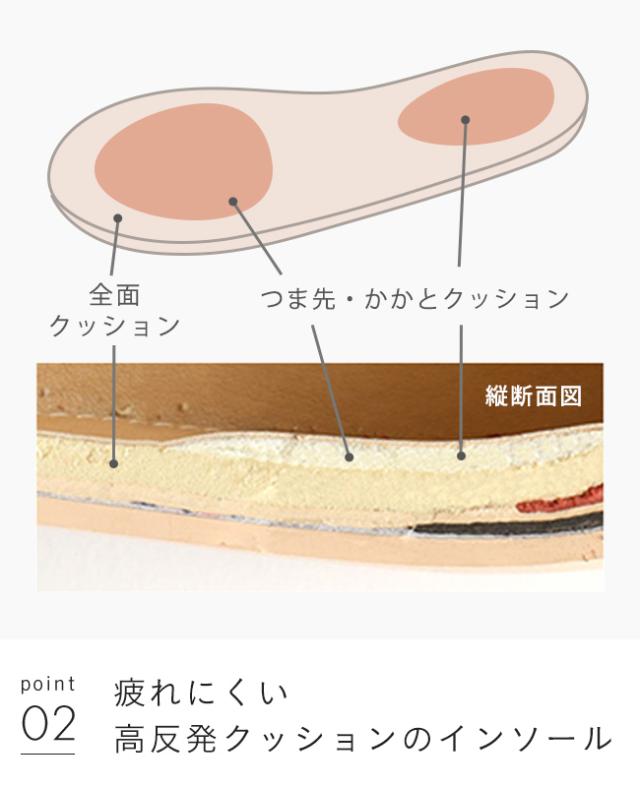 へたりにくいクッションが、たくさん歩く足元の疲れを軽減してくれます。
