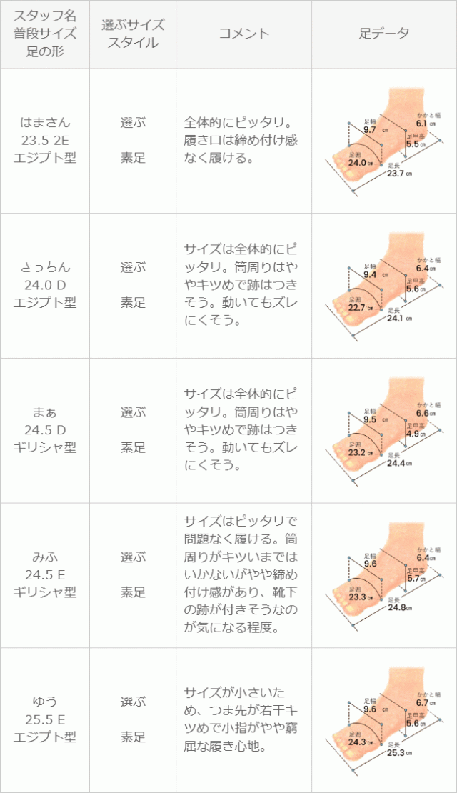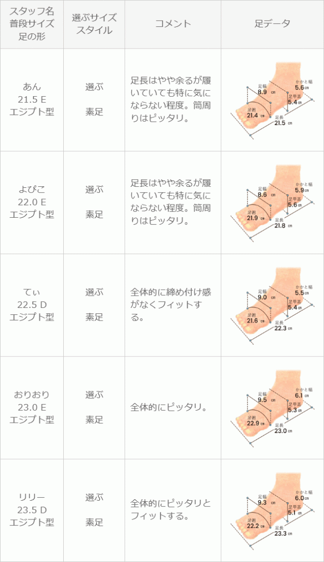 ※足の形には個人差があります。スタッフ試着感想は参考程度にお考え下さい。