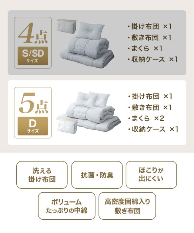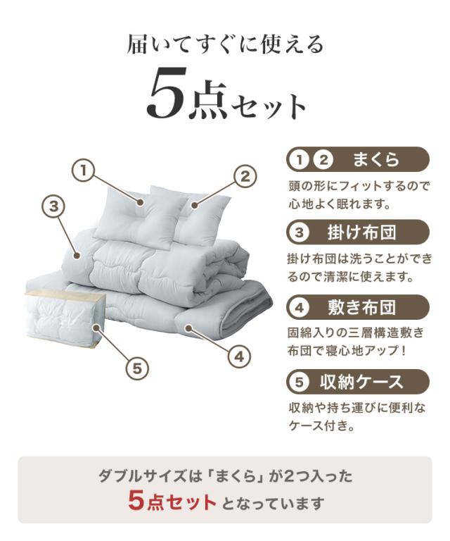 布団セット ダブル 布団 寝具 5点セット 固綿 綿 洗える ほこりができにくい 布団 抗菌 防臭 認定工場生産 布団 D ふとんセット ふとん セット 布団 敷布団 組布団 掛け布団 敷き布団 洗える布団 枕 新生活 寝具セット 送料無料