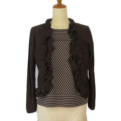 【中古】セシオセラ CECI OU CELA アンサンブル ニット フリル ボーダー M L 茶 ブラウン レディース