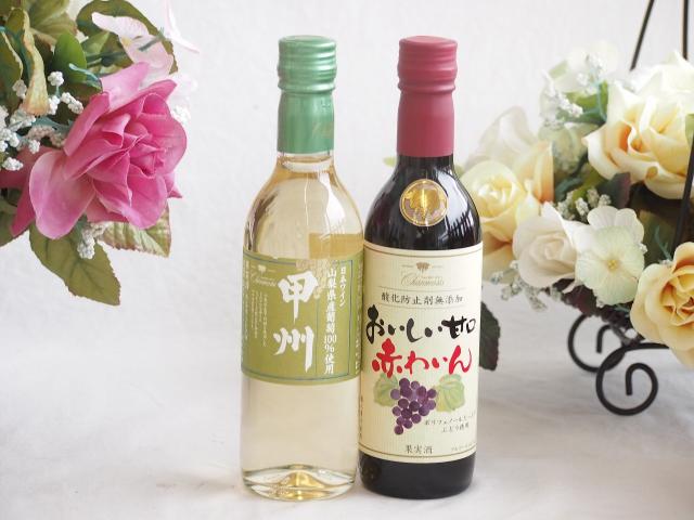 ハーフボトル2本セット(山梨県産葡萄100% 甲州やや辛口 白ワイン おいしい甘口赤わいん) 360ml×2本