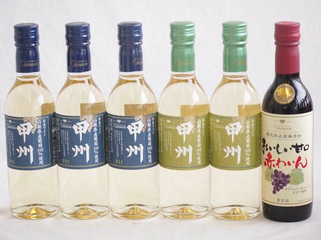 ハーフボトル6本セット(山梨県産葡萄100% 甲州辛口 白ワイン 山梨県産葡萄100% 甲州やや辛口 白ワイン おいしい甘口赤わいん) 360ml×6本