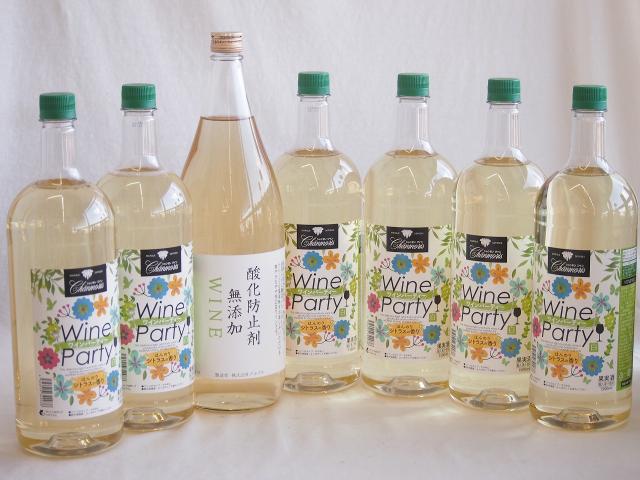 大容量ボトル7本セット(ワインパーティー 白ワイン やや辛口 酸化防止剤無添加 白ワイン やや辛口) 1500ml×6本 1800ml×1本