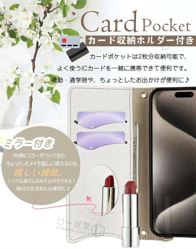 - カード収納もできてミラー付きでお財布の機能もあってショルダーストラップ付きで、めちゃ理想的なケースですで満足です。が、強いて言うなら、ストラップがチェーンタイプより柔らか紐や皮製の物が良かったなぁって...