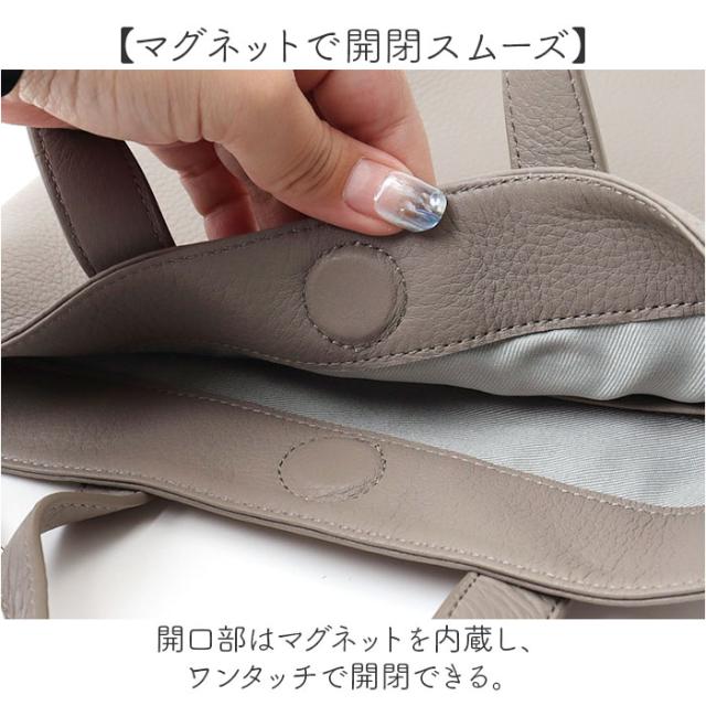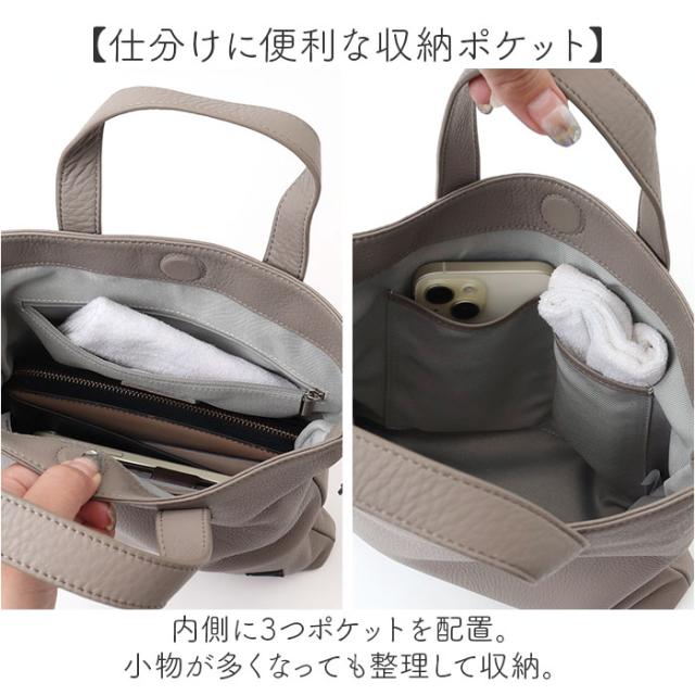 | 商品説明 | 【オトナモードに決まる】 ・レザーライクで大人っぽく☆ユニセックス仕様の 2WAYトートがwakuから発売。 【waku-ワク-】 「枠」にとらわれないデザインを。機能性も実用性も兼ね備えたグッズ展開が魅力。 【使い込むほど愛着の湧く牛革製】 ・シボ感のある柔らかな風合いが使い込むほどに馴染むのが特徴的な牛革を採用。 【耐久性も◎】 ・強度や耐久性に優れた本革素材なので長く愛用できるアイテム。 【マストアイテムをひとまとめ】 ・お財布やハンカチ、スマホなど、マストな小物を収納できるコンパクトなサイズ感。 【仕分けに便利な収納ポケット】 ・内側に3つポケットを配置。小物が多くなっても整理して収納。 【ハンドル付きでトートで使える】 ・ハンドルを搭載し、手持ちやサッと持ち出したいときに便利☆ 【斜め掛けでハンズフリーに】 ・ショルダーストラップは長さ調節ができ、斜め掛けもOK。ハンズフリーで使えるのもGOOD 【バッグインにも】 ・ショルダーストラップは付け外しもでき、バッグインとしても使える。 【マグネットで開閉スムーズ】 ・開口部はマグネットを内蔵し、ワンタッチで開閉できる。 【シルバーパーツでアクセント】 ・金具はシルバーパーツを取り入れ、スタイリッシュなアクセントに。 【付属のリングで機能性UP】 ・付属の取り外し式リングには鍵などを付けられるため、利便性が高まる♪ 【コーデに取り入れやすいカラー】 ・ベーシックカラー中心のラインナップで様々なコーデにマッチするのも嬉しい。 【ジェンダーレスで使えるのも◎】 ・装飾が少なく、ワンカラーなので性別や年代問わず持ちやすい仕上がりなのもポイント。 【2タイプのブランドロゴ付き】 ・外側にホワイトカラーの箔押しロゴと、ロゴパッチを配置。コーデや気分に合わせてチョイス♪ 【ポケット仕様】 ・メインルーム・・・オープンポケット×2、ファスナーポケット×1 |