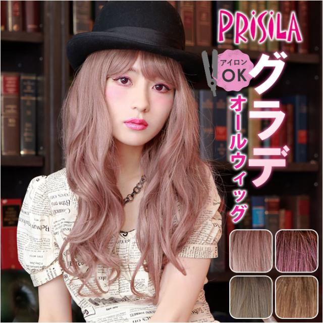 プリシラ prisila オールウィッグ ロング A-100 通販 ホイップカールロング フルウィッグ 全頭かつら ウィッグ かつら ウイッグ つけ毛 カツラ 自然 簡単 グラデーションカラーウィッグ レディース 女性用 かわいい 可愛い 上品