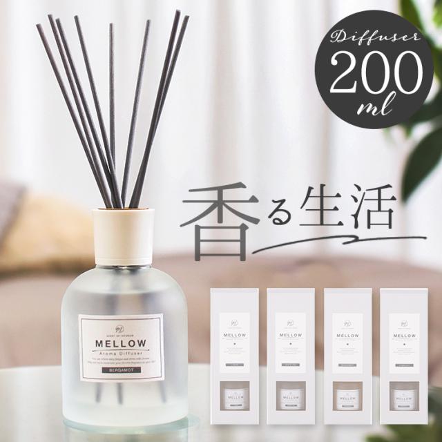 リードディフューザー 200ml 通販 リード ディフューザー スティック Mellow メロウ ルームフレグランス アロマディフューザー 芳香器 おしゃれ シンプル 寝室 ベッドルーム 玄関 リビング 癒しグッズ アロマ お香 インテリア