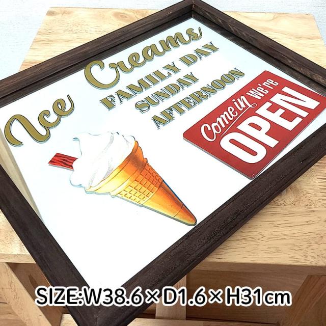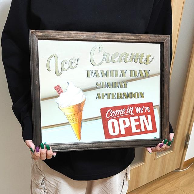 パブミラー かわいい 木製 鏡 おしゃれ 壁掛け アメリカン ミラー レトロ ソフトクリーム アンティーク 雑貨 ICE CREAMS インテリア