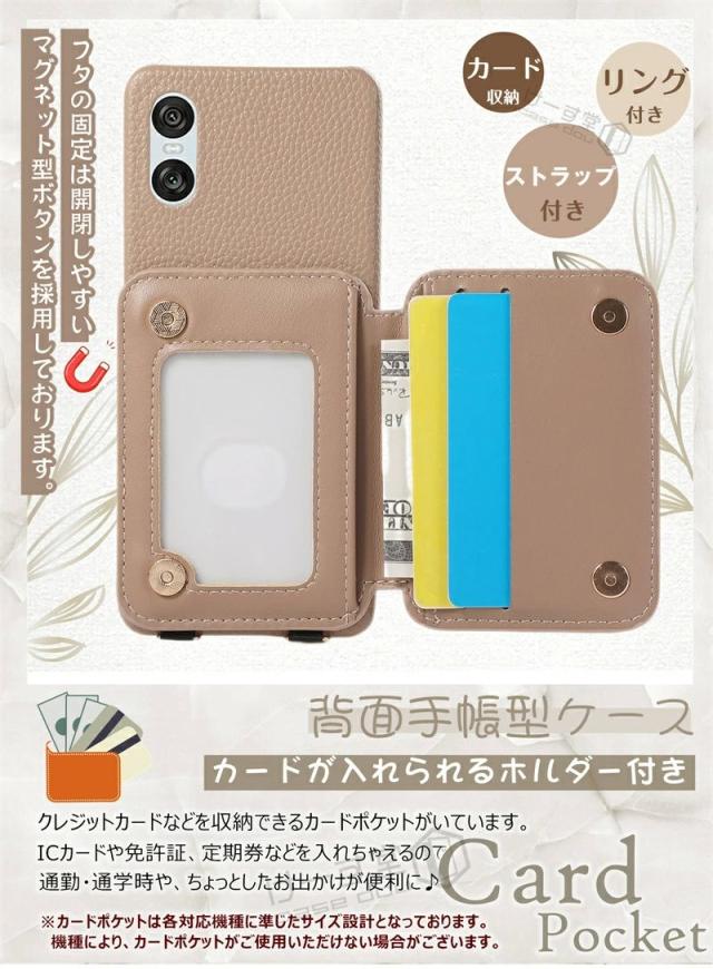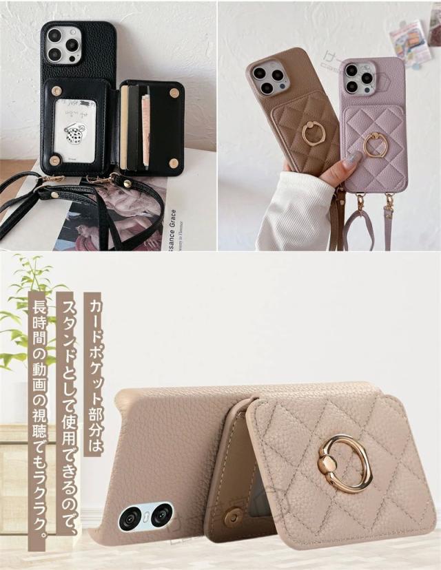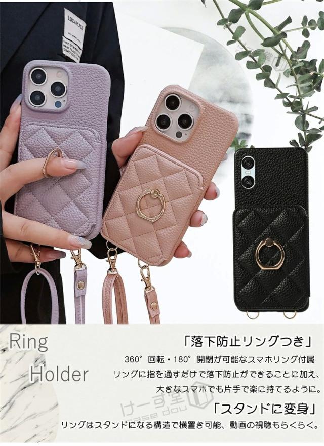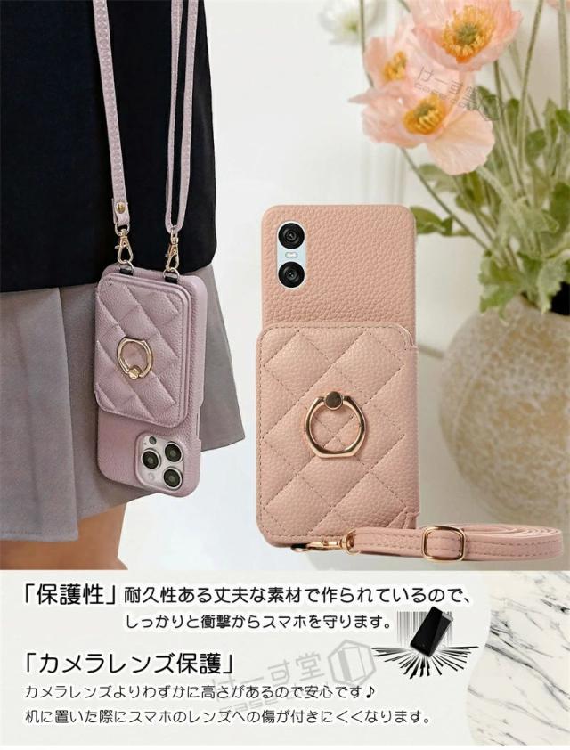 スマホショルダー リング付き Xperia 10VII 1VII 10 VI ケース ショルダー おしゃれ 可愛い エクスペリア Xperia 10 5 1 VI IV Ace III 携帯ケース カード収納 背面手帳型ケース キルティング 背面カードケース 携帯ショルダーストラップ 斜め 肩掛け