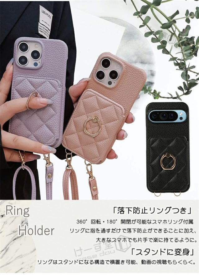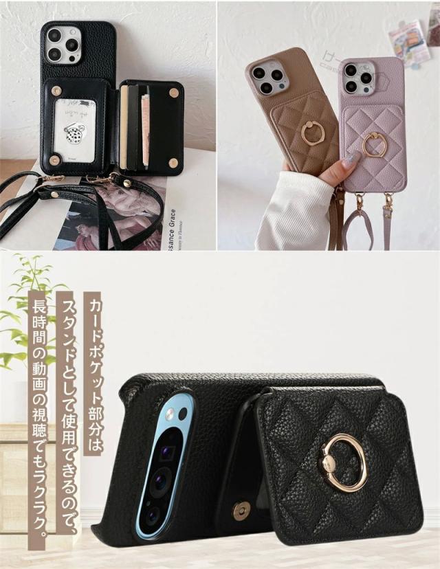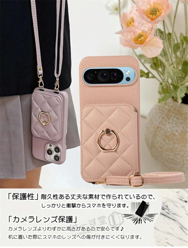 スマホショルダー リング付き Googleピクセル9a 9 10 Pro XL ケース ショルダー おしゃれ 可愛い Google Pixel 7 8 pro ケース グーグルピクセル 7a 8a 6a 携帯ケース カード収納 背面手帳型ケース キルティング 背面カードケース 携帯ショルダーストラップ 斜め 肩掛け