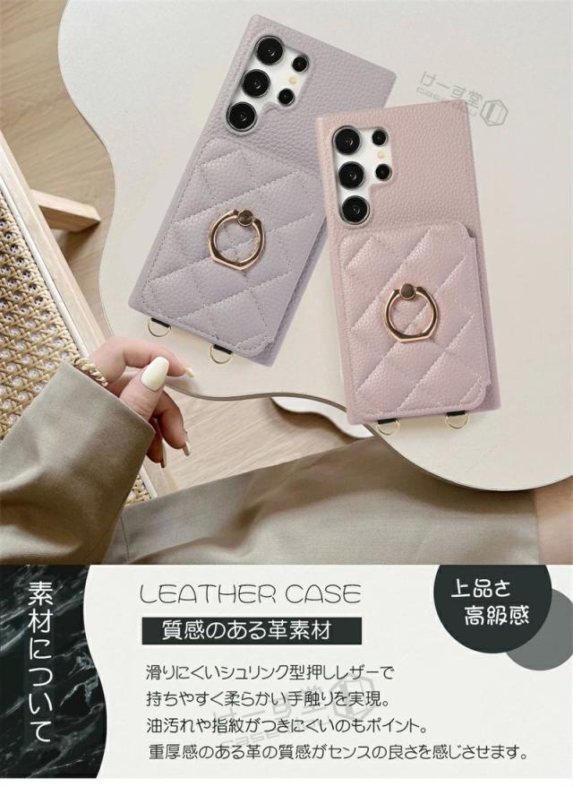スマホショルダー リング付き ギャラクシーA36 A25 S25 S24 S23 ウルトラ 5G ケース ショルダー おしゃれ 可愛い Galaxy S24FE S22 Ultra A55 A54 A53 5G 携帯ケース カード収納 背面手帳型ケース キルティング 背面カードケース 携帯ショルダーストラップ 斜め 肩掛け