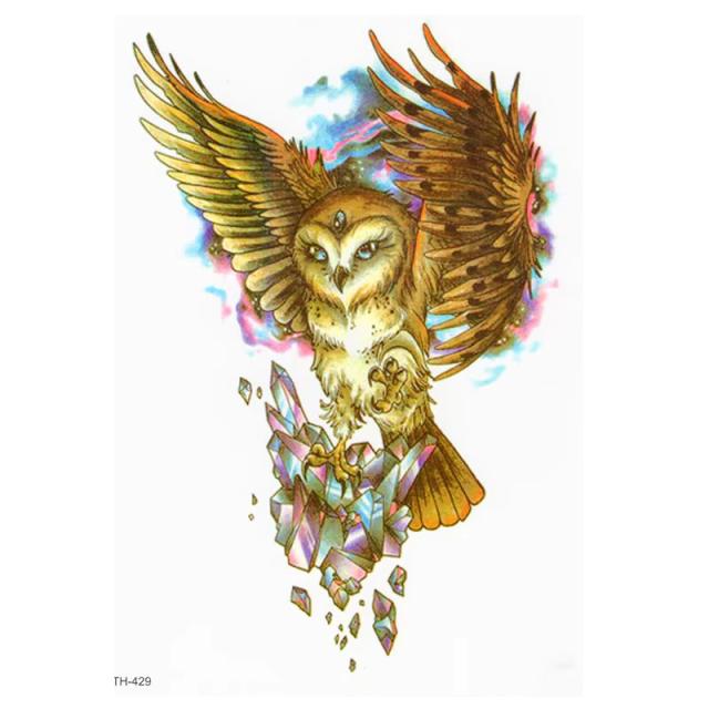 大きいサイズの3つ目のフクロウをモチーフにした水で貼るフェイクタトゥ—ステッカー。
