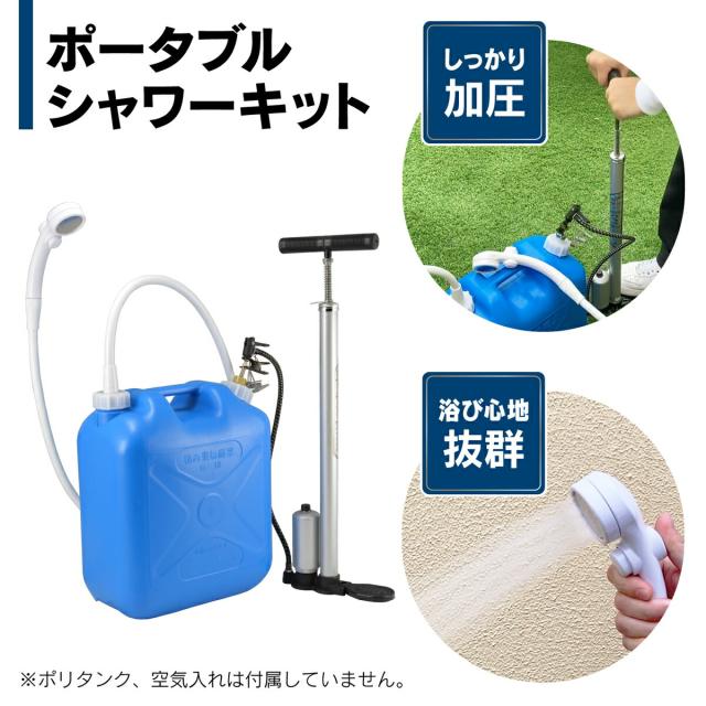 ポリタンクと組合わせて、キャンプや車中泊などに活躍する加圧式アウトドアシャワーを自作出来るキットです。