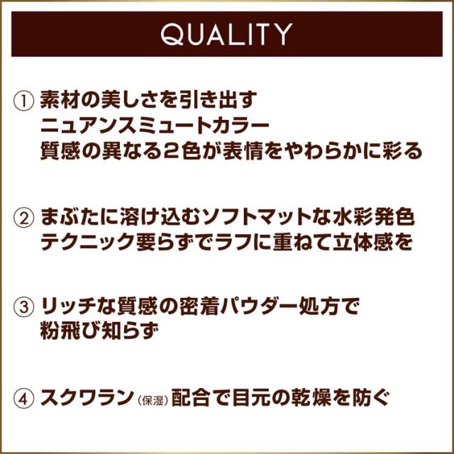 ●絶妙2トーンカラーで目元に軽やかな彩りを添えるまろやか発色の<引き算メイク>アイシャドウ