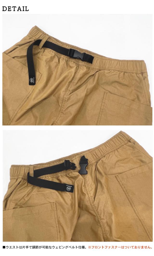ゴムウエストとウェビングベルト仕様でラクに調節できるのも嬉しいポイント♪