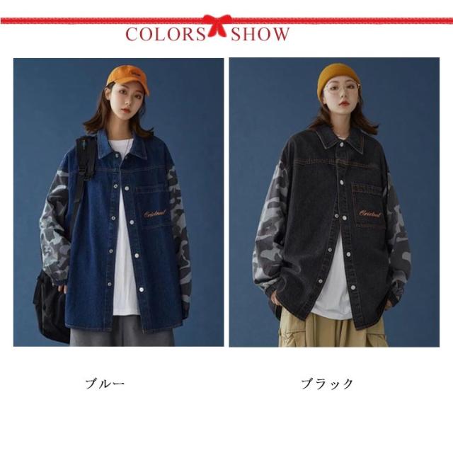 デニム ジャケット レディース カジュアル 切り替え ジージャン 重ね着風 コート 秋 配色 モード系 シャツジャケット ジュニア トップス ライトアウター 羽織り 男女兼用 春秋着 アウター お洒落 部屋着 オーバーサイズ 旅行 長袖 通園 通学 旅行 送料無料