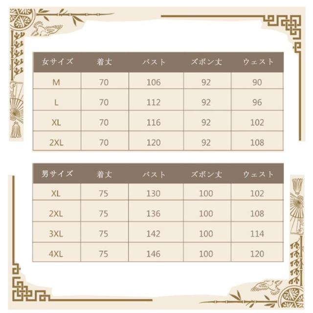 | サイズ | M(女) L(女) XL(女/男) 2XL(女/男) 3XL(男) 4XL(男) |
