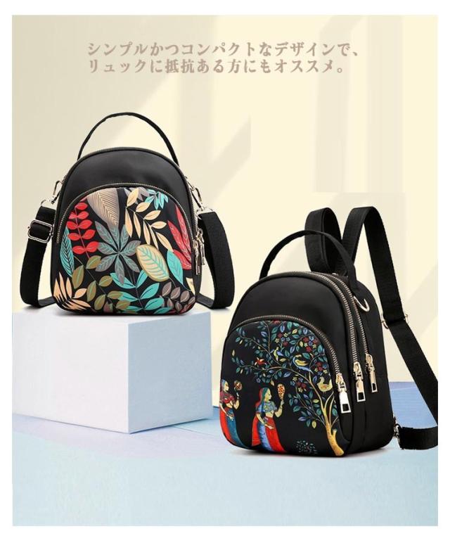 | 女性らしいサイズ感と実用性を兼ね揃えたミニリュック。 シンプルかつコンパクトなデザインで、リュックに抵抗ある方にもオススメ。 撥水加工のナイロン生地で小さめの雨の大丈夫。 収納ポケットも充実しており、小物の収納に便利! また、ファスナーで開閉口が大きく開くので、中身の取り出しもラクラク。 小さくてもしっかり収納力を備えた、実用的なバッグになっています。 どんなコーデにも持ちやすく、幅広い年齢層に使っていただけます。 | |
