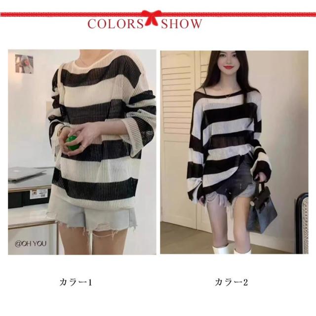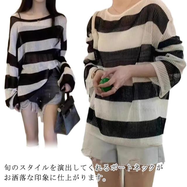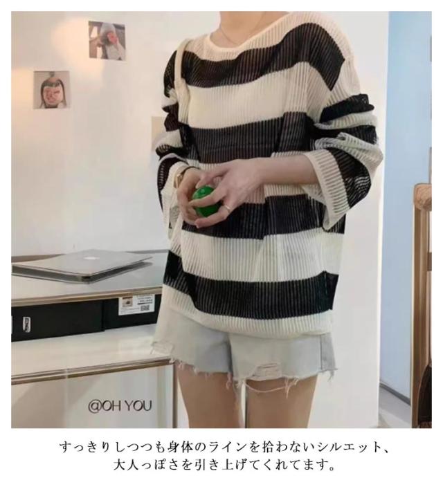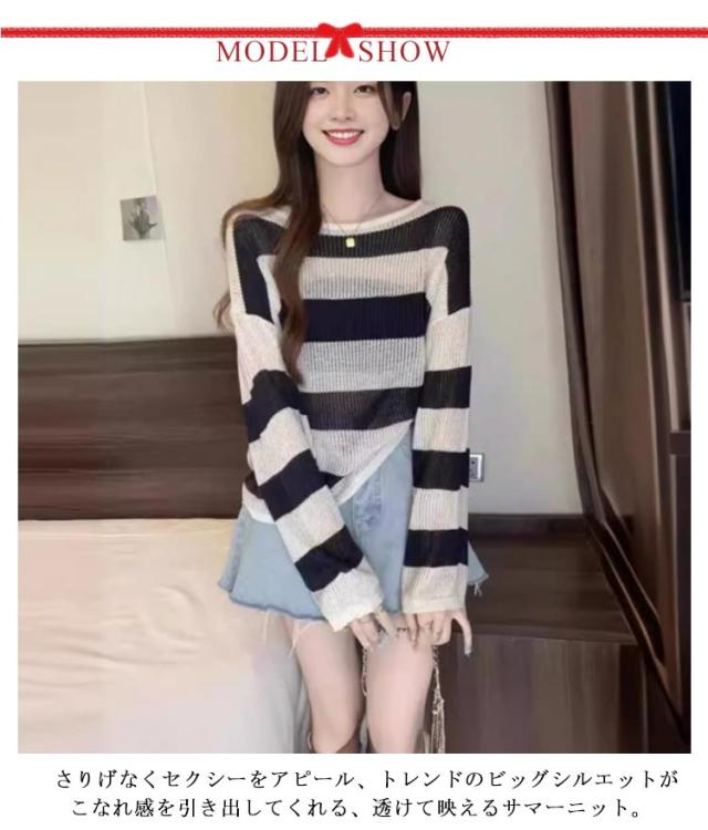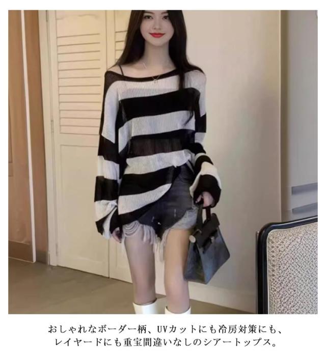 ニット シアー セーター ボーダー セーター シアートップス 長袖 トップス ニットトップス レイヤード レディース ボーダー 冷房対策 きれいめ 体型カバー