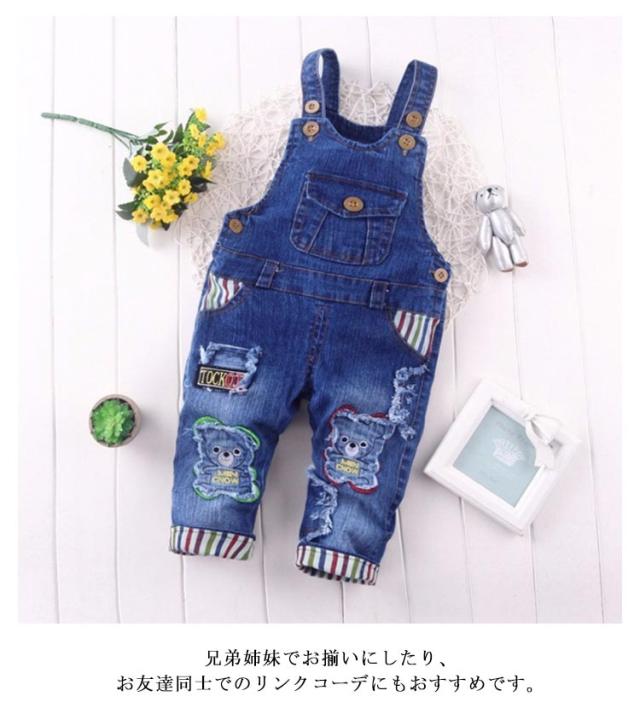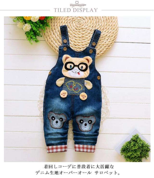 デニム ボトムス サロペット ジーンズ オーバーオール クマ柄 つなぎ キッズ ベビー服 韓国子供服 男の子 女の子 80cm 90cm 100cm