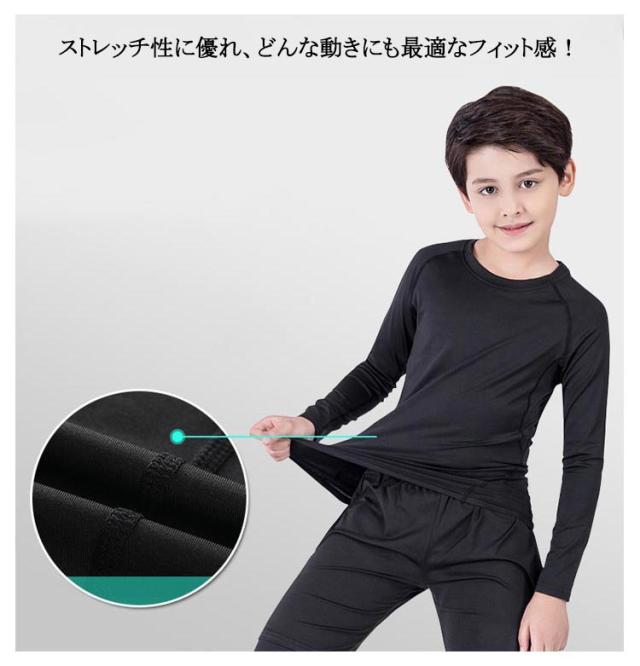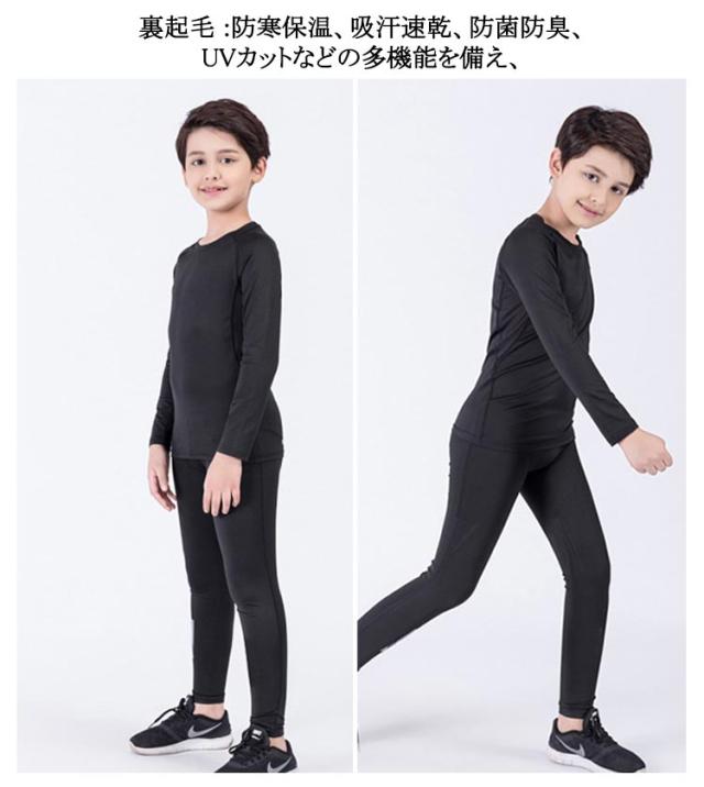 スポーツ ジュニア 長袖 男女兼用 キッズ 2点セット 裏起毛 コンプレッション ストレッチ インナー スポーツアンダーウェア ロングレギンス 吸汗 速乾 防寒 2点セット トレーニングウェア 少年団スポーツ 110 120 130 140 150 160