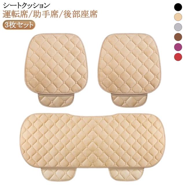 おしゃれ 3枚セット 1台分 クッション 全席 シートカバー セット 前席 後部座席 ポケット カーシート 座布団 シートカバーシート カークッション 座布団 車座布団 カー用品 取付簡単 滑り止め 車イスクッション 車用 汎用 アクセサリー 内装 運転席 助手席