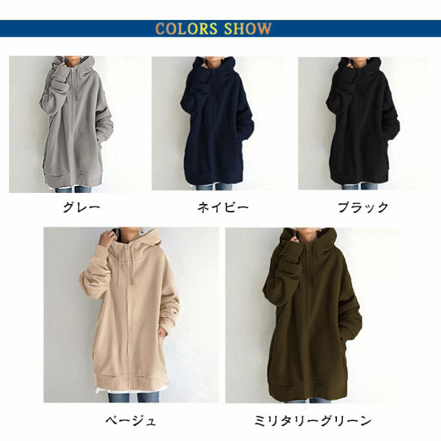 ジップパーカー ロング丈 レディース 裏起毛 パーカー フード付き スウェット ジップアップパーカー ボリュームネック ロングパーカー 体型カバー 長袖 無地 トップス 着痩せ あったか おしゃれ ゆったり 大きいサイズ 防寒 秋冬 羽織り