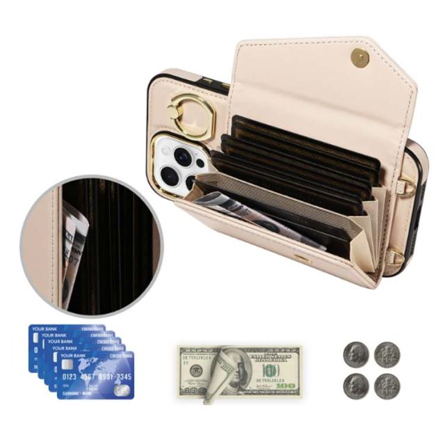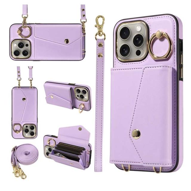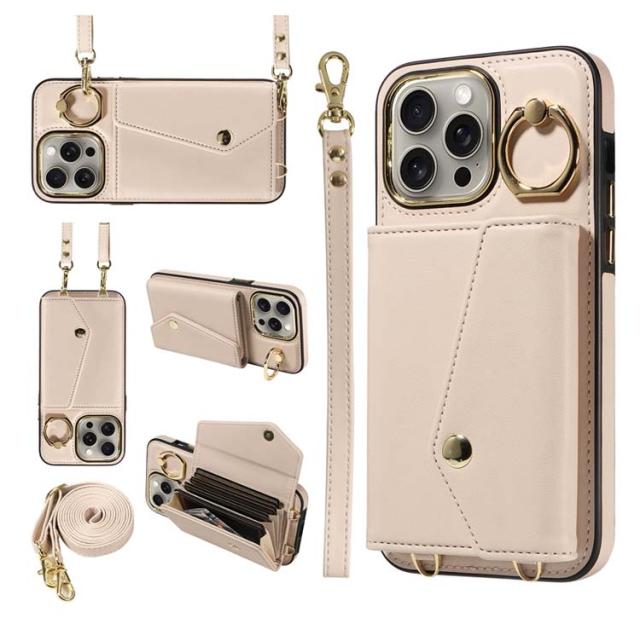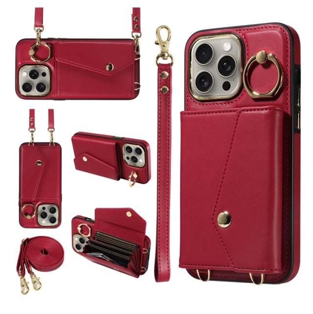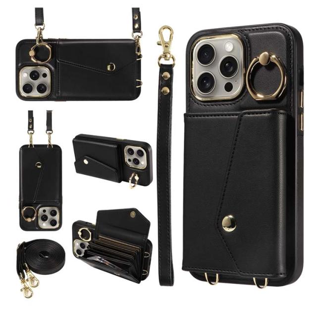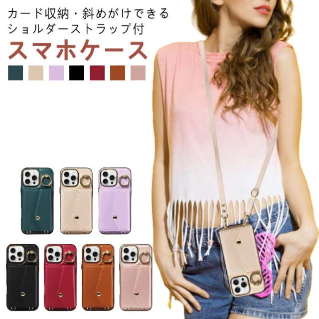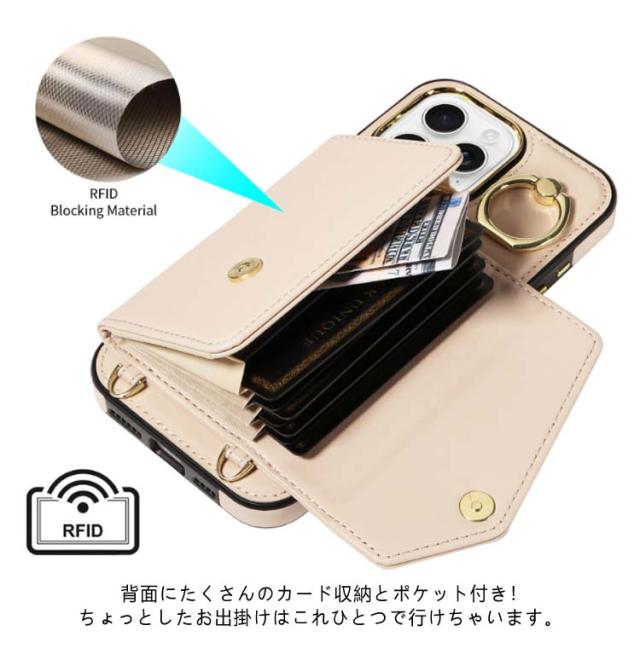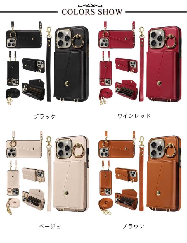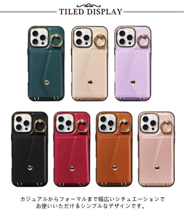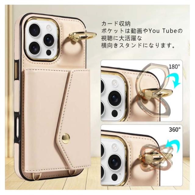 カード 15Pro 斜め掛け 背面手帳型ケース 14スマホケース 16 ショルダー 15Plus 15ProMax iPhone16ケース max ポケット iPhone16ケース PUレザー ショルダーストラップ 肩かけ 携帯ケース 耐衝撃 落下防止 シンプル