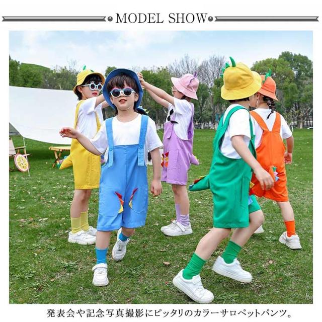 カラーサロペット 子供用 かわいい恐竜テール! 女の子 ダンス衣装 男の子 かわいい恐竜テール! 薄手 春夏秋 キッズ おしゃれ カラフル HIPHOP 幼稚園 卒業写真撮影 発表会 卒園式 ジュニア チーム揃い 演出服 応援団 サロペット パンツ 韓国子供服 無地