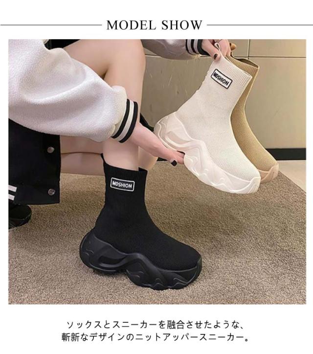 プラットフォーム ハイカットスニーカー 靴 ソックスブーツ レディース 厚底ブーツ ニットブーツ 厚底 シューズ 厚底 通気 ストレッチ ソックス ソックススニーカー 送料無料 くつ クツ スニーカーブーツ ショートブーツ 歩きやすい 軽量 伸縮 ブラック ベージュ