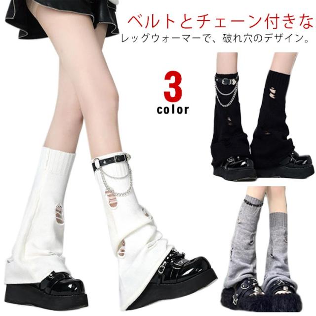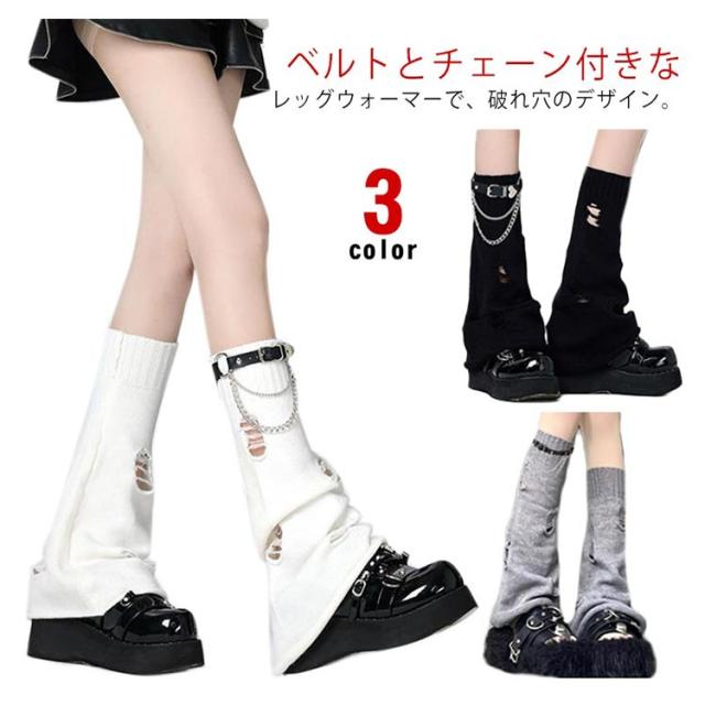 サブカル系 ルーズソックス JK サブカル系 レッグウォーマー レッグカバー チェーン ベルト付き レディース 病み可愛い サブカル系 破れ穴 ゴシック Y2K 女子 学生 ギャル 原宿パンク ゴスロリ 靴下 地雷系 冷え対策 暖かい 防寒