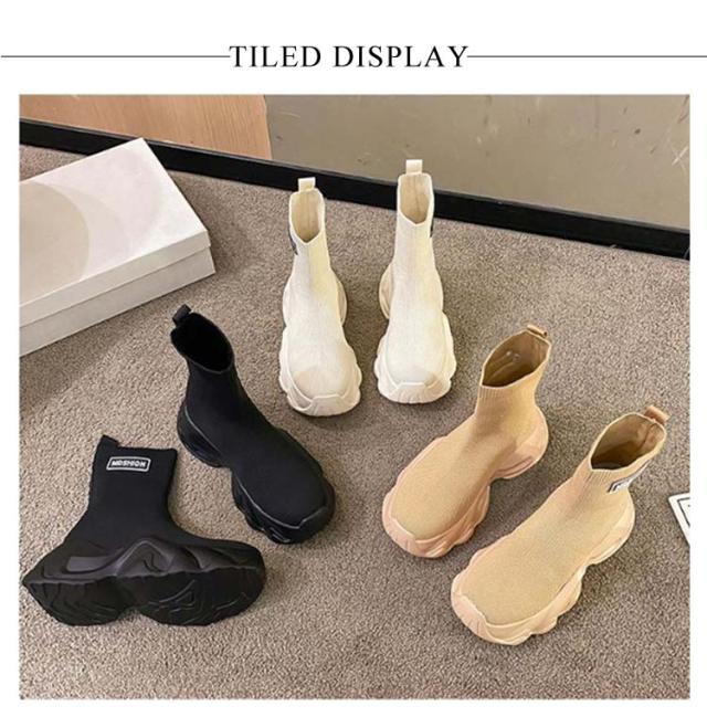 ソックススニーカー 厚底 ソックスブーツ ストレッチ ソックススニーカー ソックス 靴 クツ くつ シューズ プラットフォーム 厚底ブーツ レディース 伸縮 送料無料 ハイカットスニーカー 厚底 スニーカーブーツ ショートブーツ 歩きやすい 軽量 通気 ブラック ベージュ