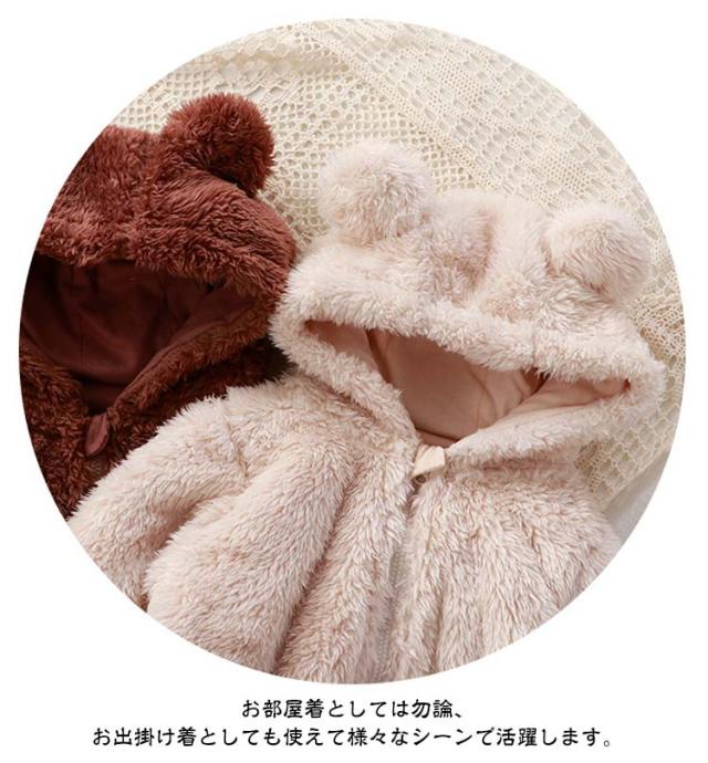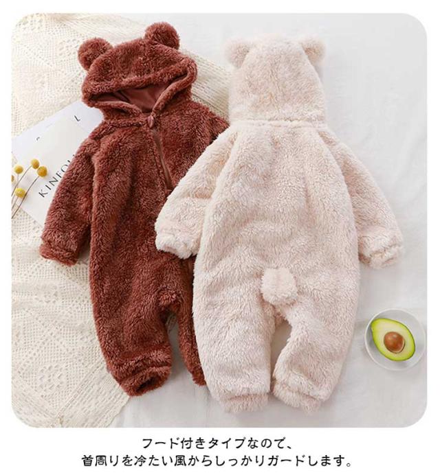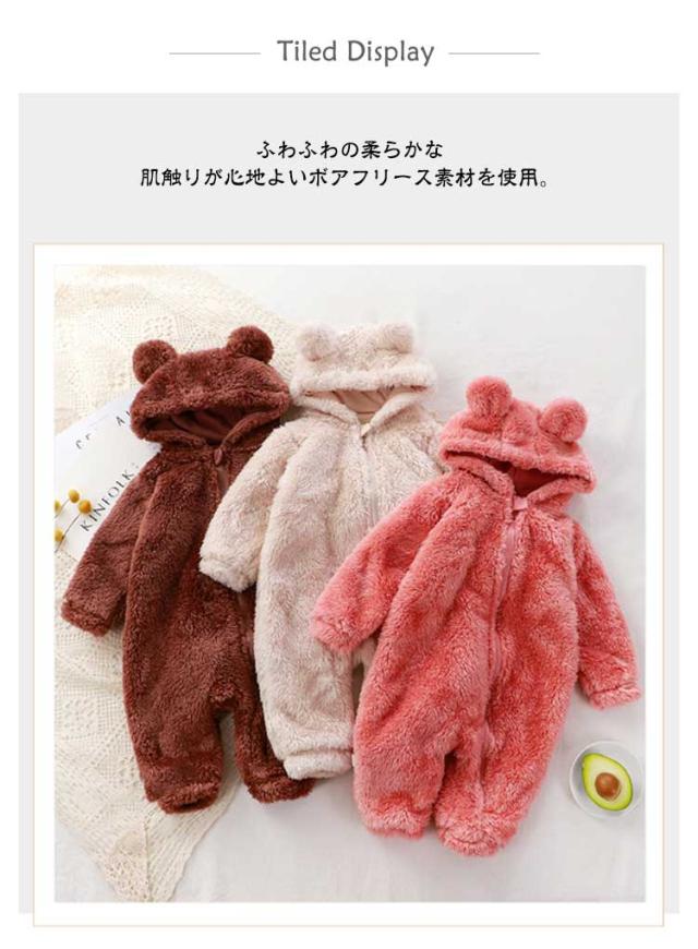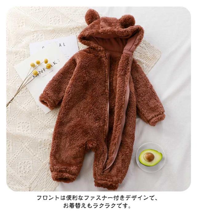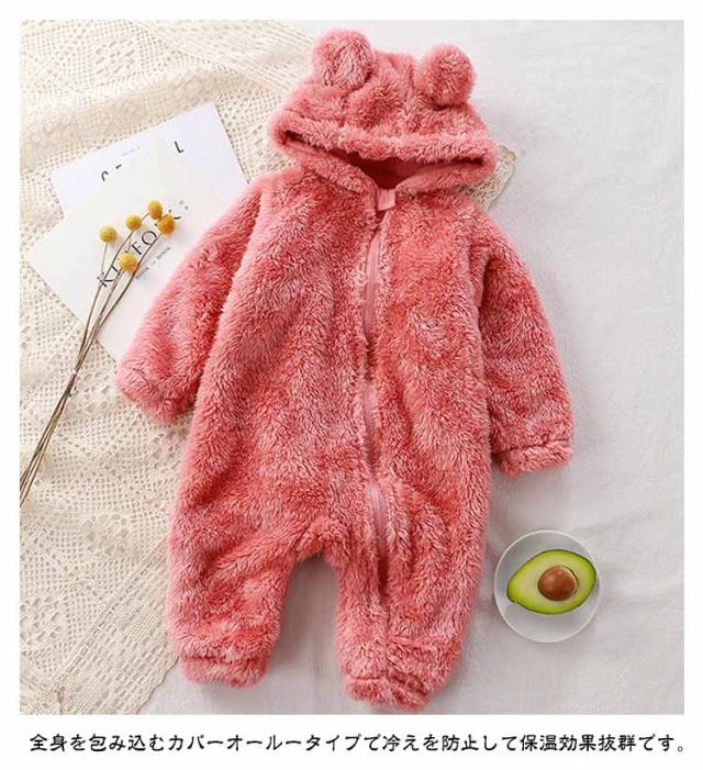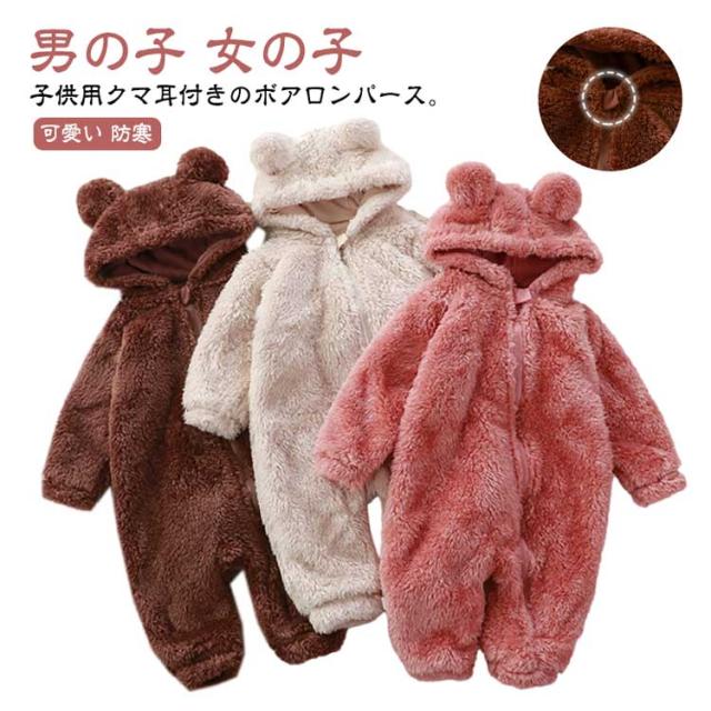 ボア 女の子 ロンパース ふわふわ 赤ちゃん ベビー 防寒 アウター ベビーカバーオール もこもこ 子ども服 フリース くま耳 フード付き 暖かい パジャマ 新生児 くま ロンパース 長袖 秋 冬 ベビー服 男の子 着ぐるみ 出産祝い 出産準備 子供服