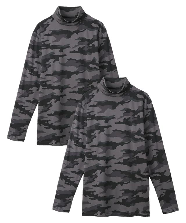 暖かくてスタイリッシュなハイネックインナー。 【あったか裏起毛ストレッチ迷彩柄ハイネック長袖インナー2枚組】 <特徴> ■裏起毛&ストレッチ素材 ふんわりと暖かです。 体の動きにもフィットします。 ■ハイネック仕様 首を覆うから寒さ対策におすすめです。 ■セット組 毎日着用するものだから、洗い替えに便利なセット組でお届けします。 同素材のタイツとロングボクサーパンツも販売しております。