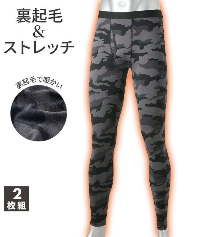 大きいサイズ メンズ あったか裏起毛 ストレッチ 迷彩柄 前開き タイツ 2枚組 冬 ビッグ ラージ インナー 男性 肌着 下着 3L/4L/5L/6L ニッセン nissen agesugi_sfa