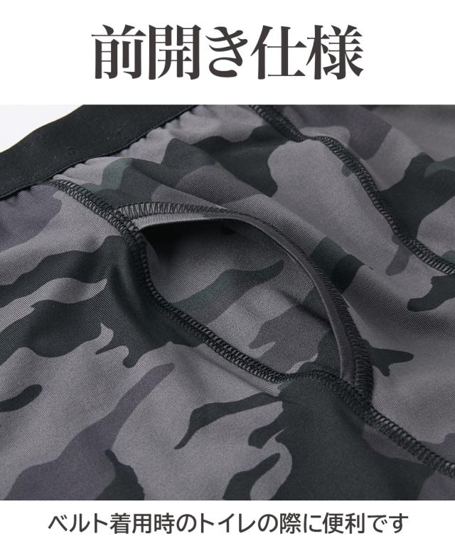 暖かくてスタイリッシュなタイツ。 【あったか裏起毛ストレッチ迷彩柄前開きタイツ2枚組】 <特徴> ■裏起毛&ストレッチ素材 ふんわりと暖かです。 体の動きにもフィットします。 ■前開き仕様 スーツや作業着のベルト着用時のトイレの際に便利です。 ■セット組 毎日着用するものだから、洗い替えに便利なセット組でお届けします。 同素材のハイネックインナーとロングボクサーパンツも販売しております。